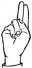На ћирилици написано ИРИНА ВУЈАЧИЋ састоји се из 12 слова [?]. Исписано ћириличном једноручном азбуком за глувонеме: